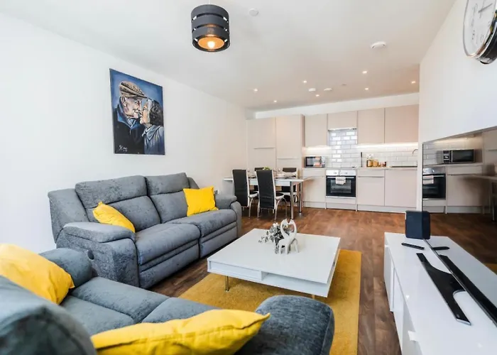 En el corazón de Birmingham se encuentra el moderno Apartamento Contemporáneo de 2 Habitaciones, ideal para disfrutar de una estancia urbana única. Este acogedor apartamento está a solo 1.5 km de atracciones emblemáticas como Birmingham Back to Backs y el Théâtre Hippodrome, ofreciéndote la oportunidad de explorar lo mejor de la ciudad con facilidad. Además, el aeropuerto se localiza a 12 km, facilitando así tu llegada y salida.